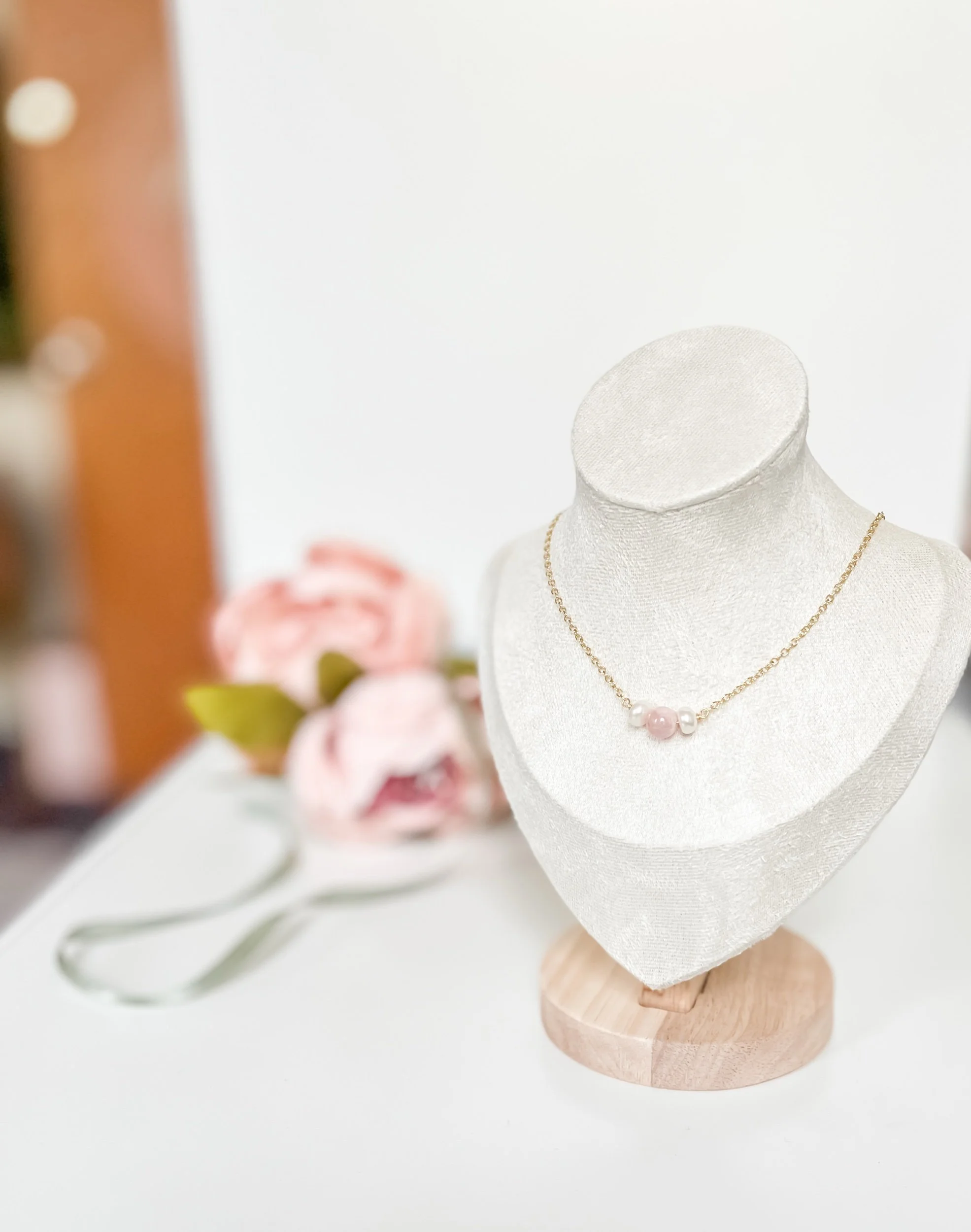 Tala Necklace $65.00 Delicate handmade 2 fresh water pearls and a small rose quartz necklace 18k gold filled Shop › Tala Necklace Quantity: Add To Cart Added! Delicate handmade 2 fresh water pearls and a small rose quartz necklace 18k gold filled